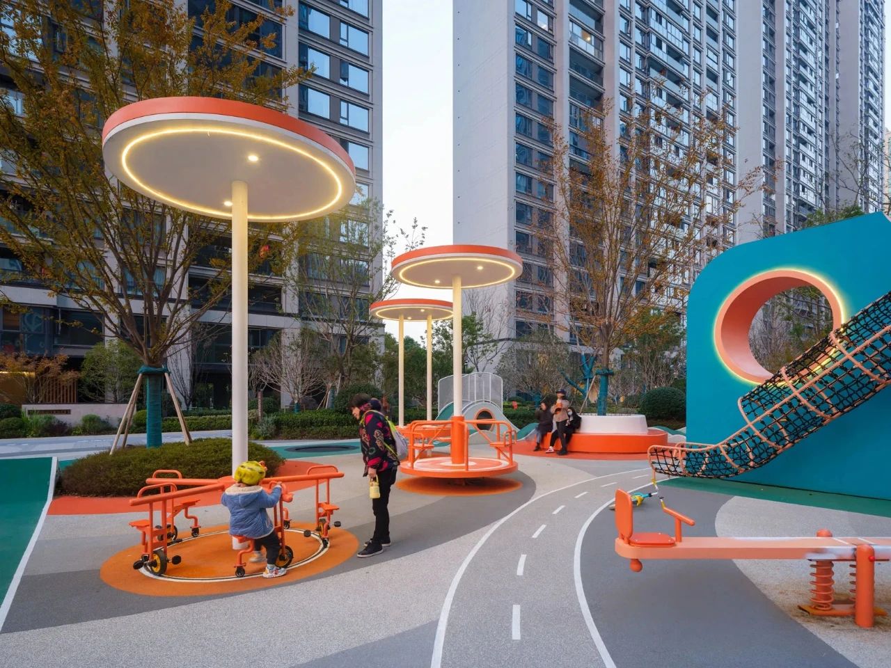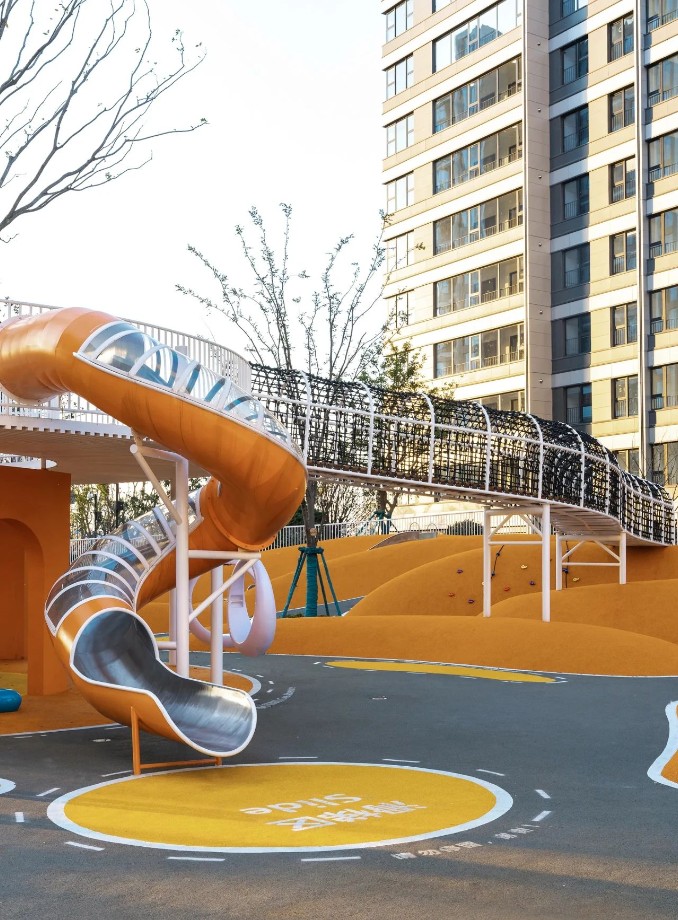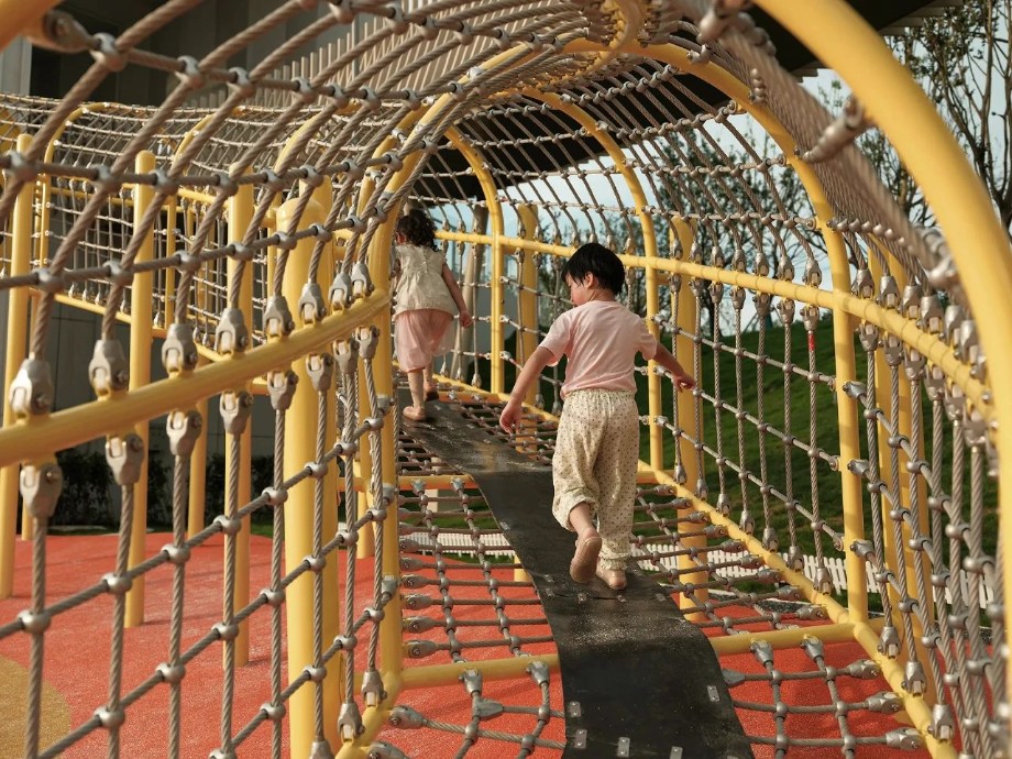 整個(gè)樂(lè)園采用軟景邊界為主的自由循環(huán)的游戲模式,打造既安全又變幻豐富的全齡兒童場(chǎng)地,可以串聯(lián)各個(gè)功能分區(qū),并衍生出多種不同版本的游線體驗(yàn)路徑。這里有適合多齡兒童玩耍的游樂(lè)裝置,為孩子們創(chuàng)造一個(gè)安全又具有挑戰(zhàn)性的游樂(lè)環(huán)境。