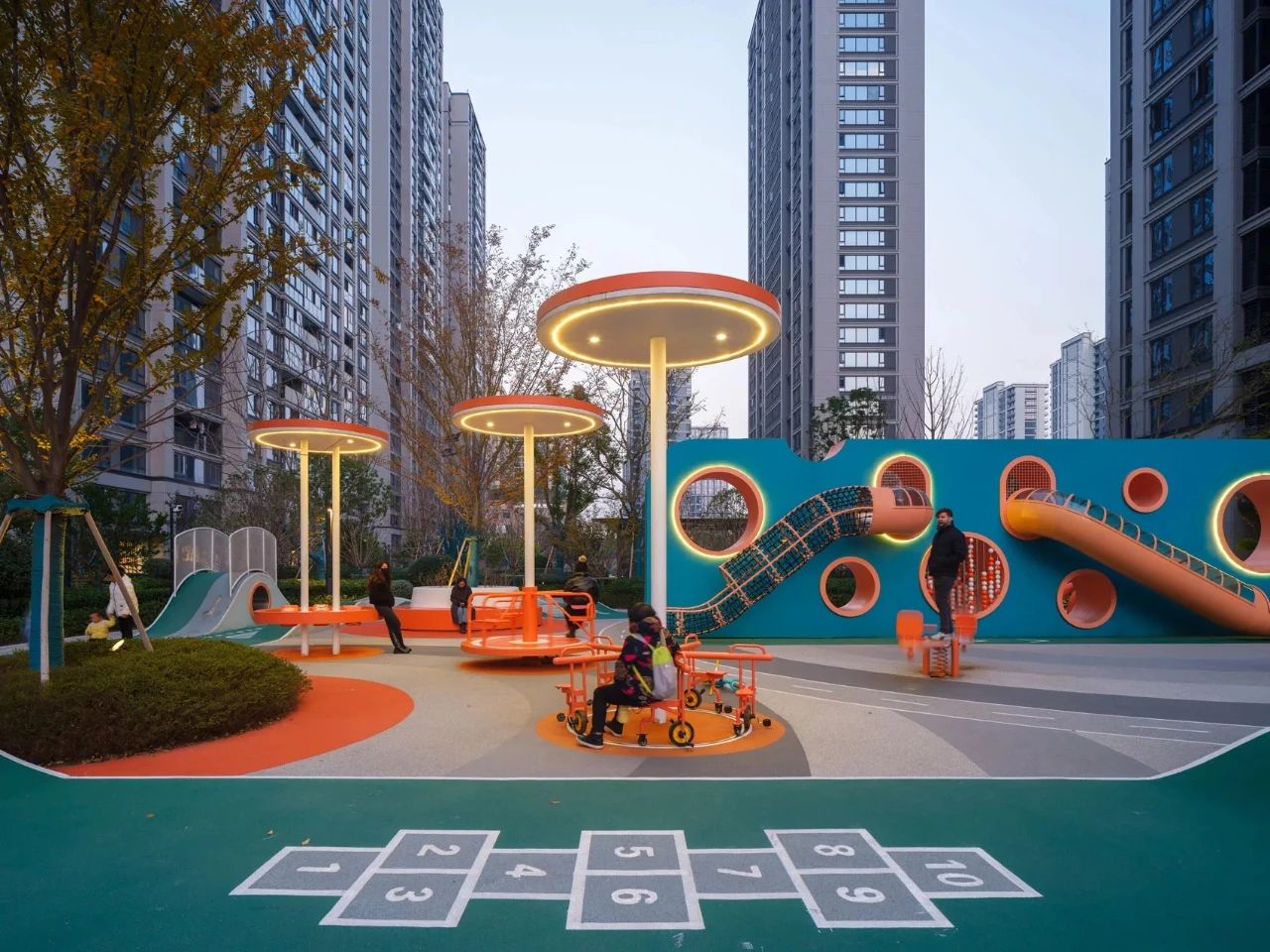 為了讓周圍樓的居民都能看到、辨認(rèn)和可讀,設(shè)計(jì)師用醒目的藍(lán)綠色創(chuàng)造了一個(gè)巨大的漢字,然后把它變成了一個(gè)游樂(lè)場(chǎng)。當(dāng)書(shū)法筆畫(huà)被幾何化時(shí),非常適合成為充滿障礙挑戰(zhàn)性和有趣功能性的游樂(lè)活動(dòng)方式,以鼓勵(lì)社交互動(dòng)。因此,它的名字,M?(my)Way-做我想做。