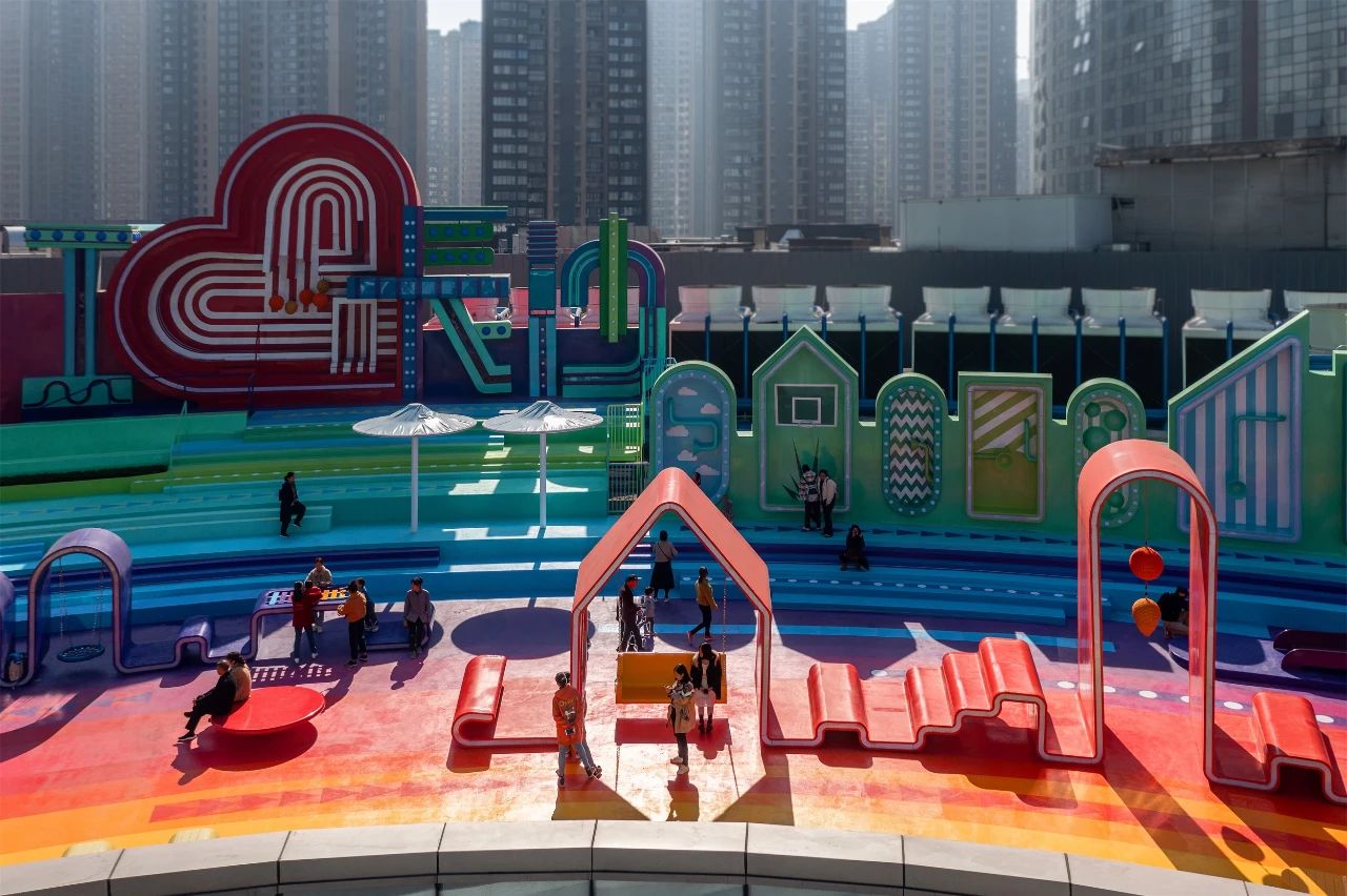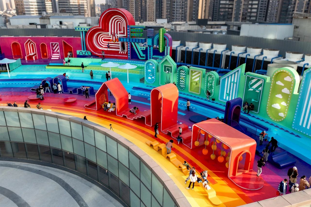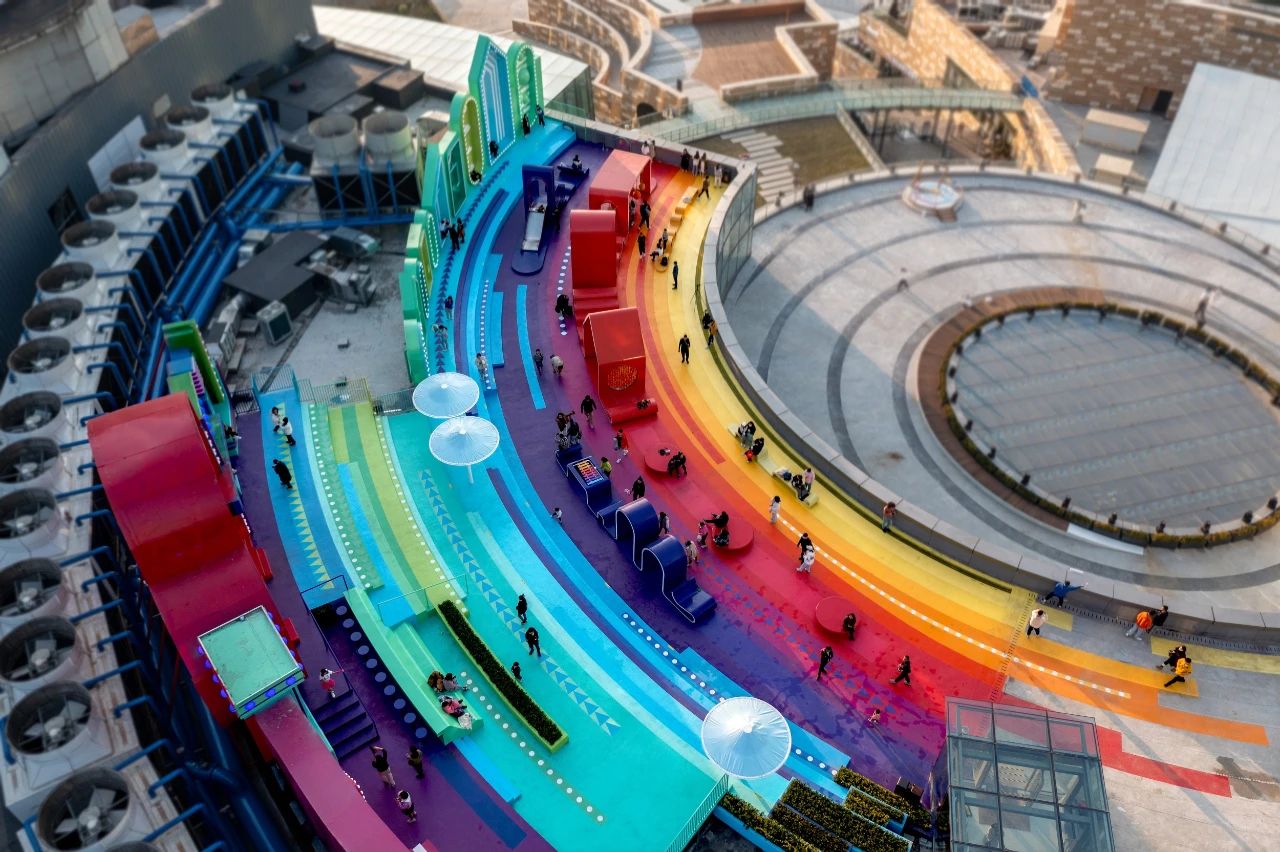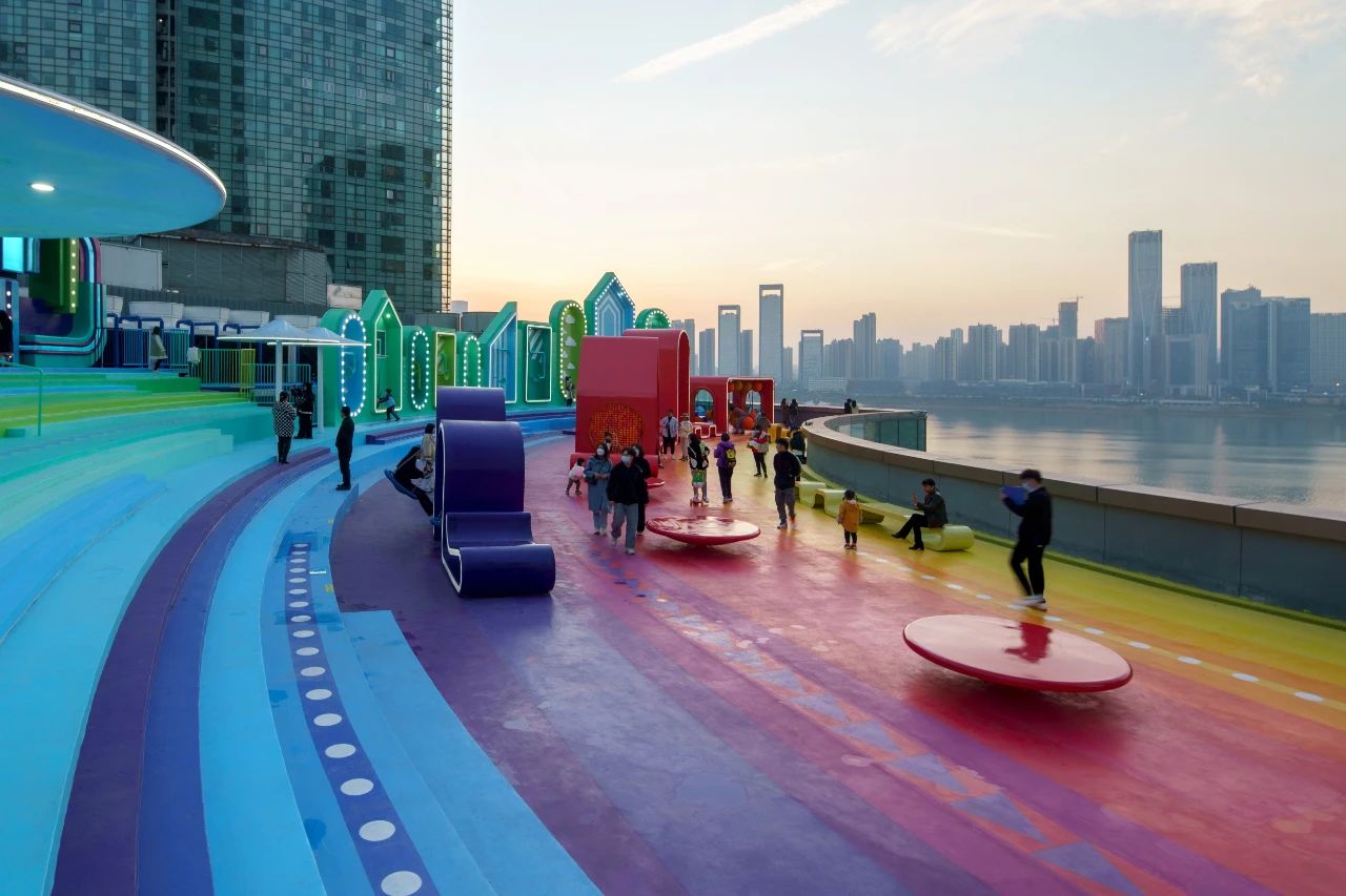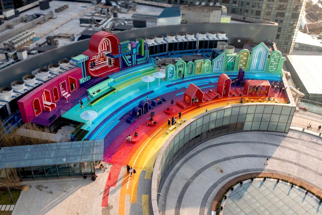 總而言之,此次屋頂?shù)母脑煸O(shè)計(jì),提升和刺激了游客的感官體驗(yàn),并成功地在長(zhǎng)沙北辰三角洲大悅城購(gòu)物中心屋頂創(chuàng)造了一個(gè)絢麗多彩、令人興奮的社交互動(dòng)樞紐