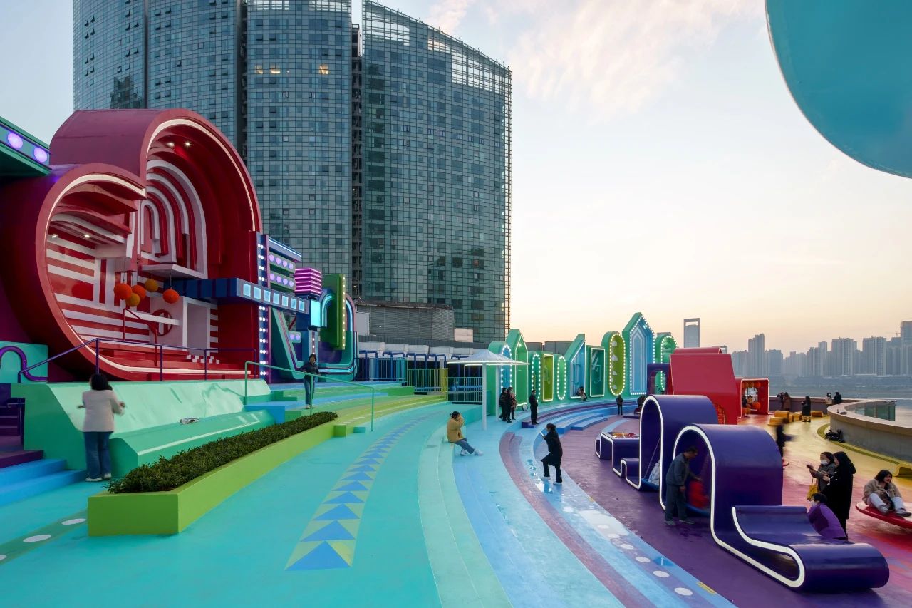 露天劇場(chǎng)還承載了項(xiàng)目中最令人矚目的主題裝置-“I ? 長(zhǎng)沙”,是屋頂空間中辨識(shí)度最高、最與眾不同的IP形象。